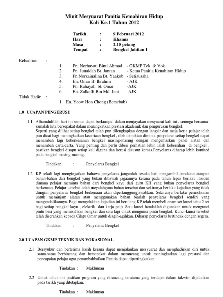 Contoh Minit Mesyuarat Pbppp Braydencxt