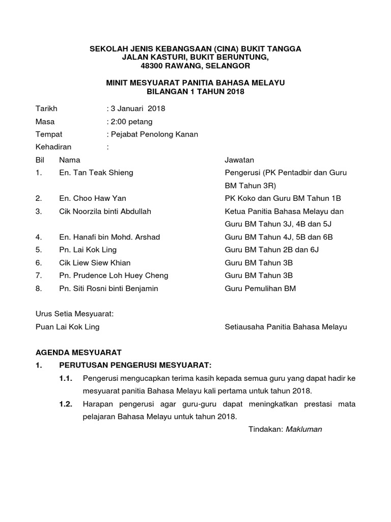 Minit Mesyuarat 1 Panitia Bm 2018 Pdf